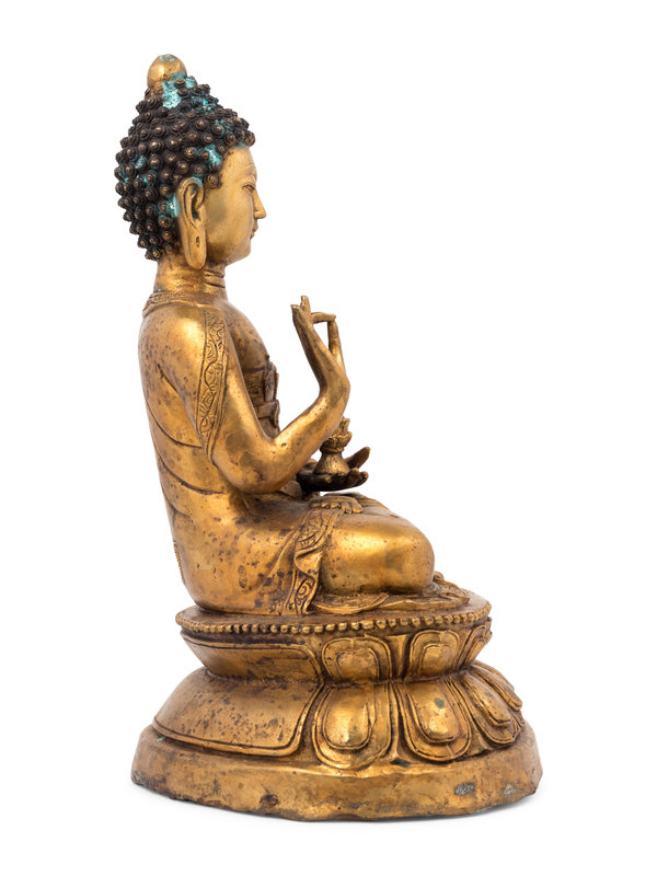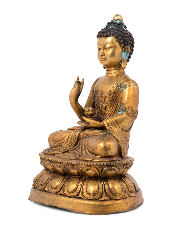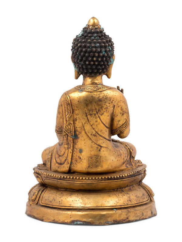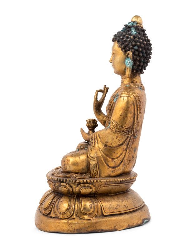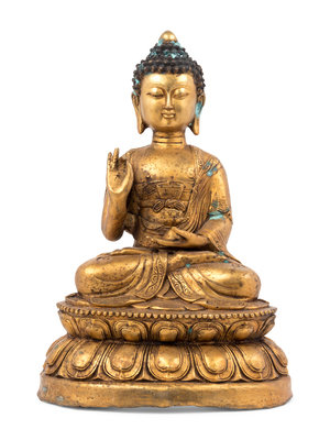 A Gilt Bronze Seated Buddha Figure on Lotus Flower Base