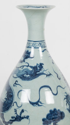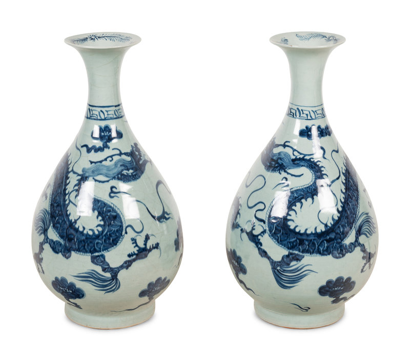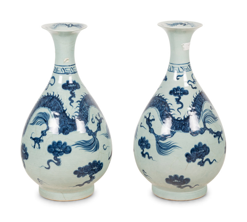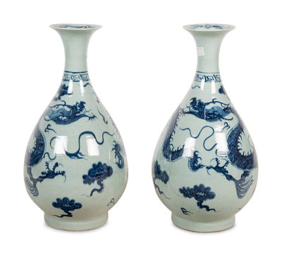 A Pair of Chinese Blue and White Porcelain Dragon Vases