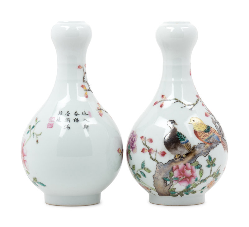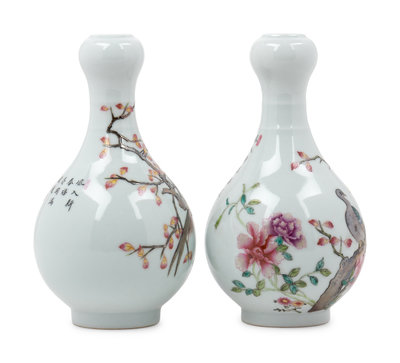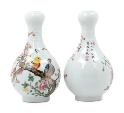 A Pair of Chinese Porcelain Vases with Birds