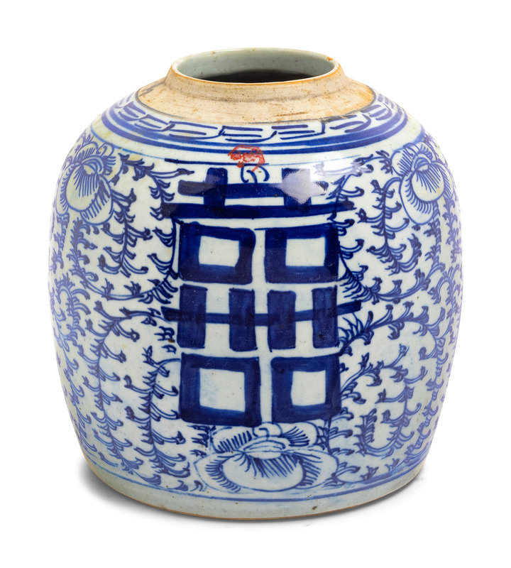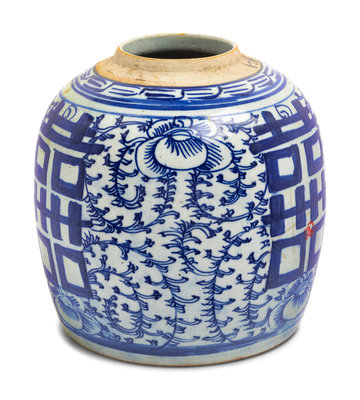 A Chinese Blue and White Porcelain Double Happiness Ginger Jar