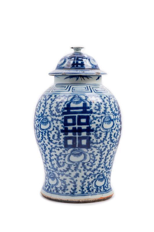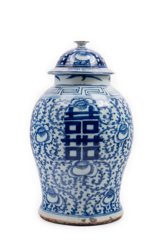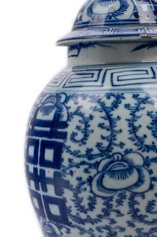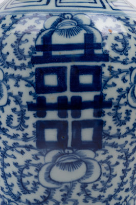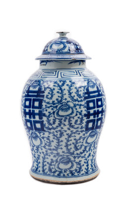 A Chinese Blue and White Porcelain Double Happiness Lidded Ginger Jar