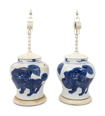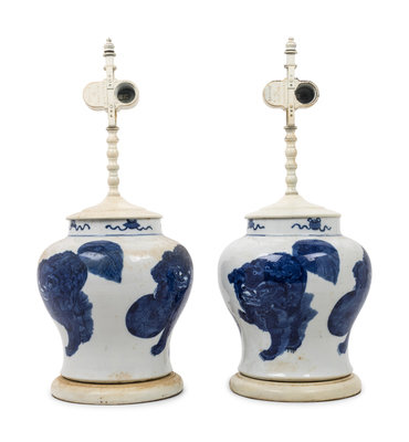 A Pair of Chinese Export Porcelain Jars Mounted as Lamps