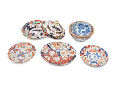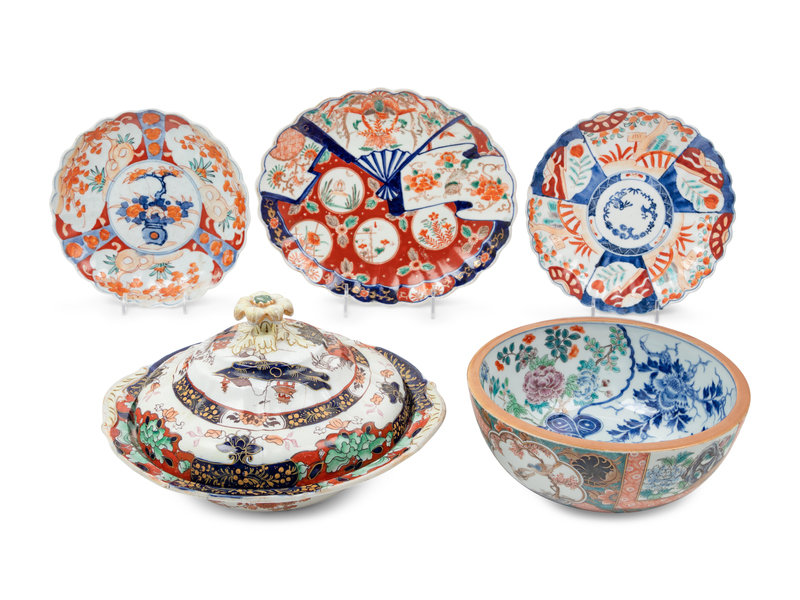 comprising two plates, a covered dish, an oval platter and a bowl.