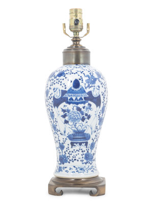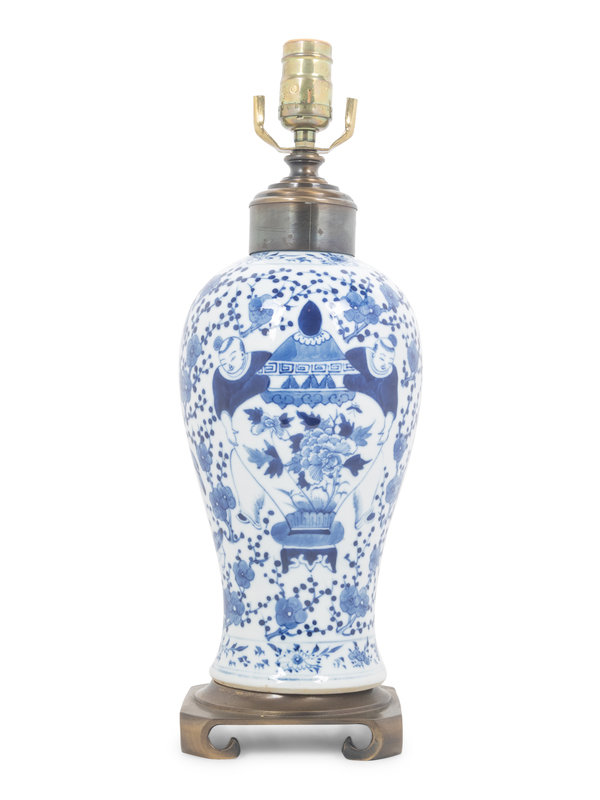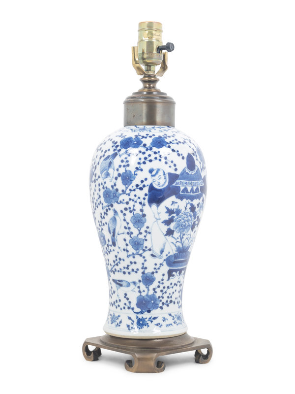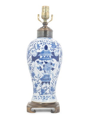 A Blue and White Porcelain Meiping Vase Mounted as a Lamp