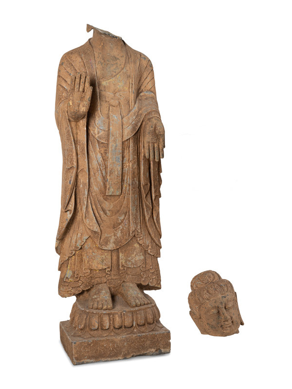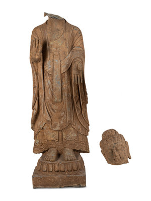 A Chinese Carved Stone Standing Buddha