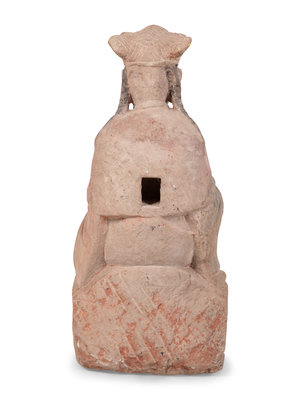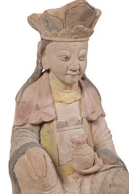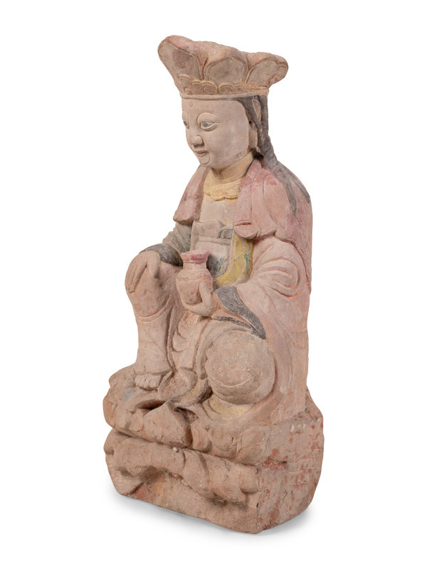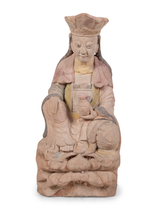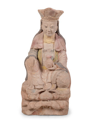 A Chinese Carved Stone Seated Figure with Polychrome Decoration