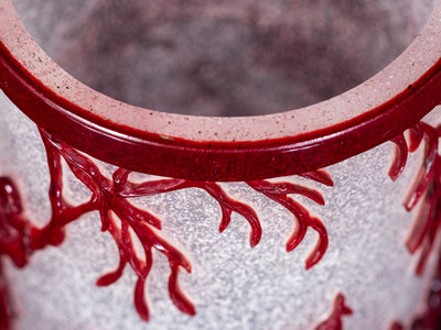 Two Chinese Ruby-Red Overlay Snowflake Ground Glass Vessels