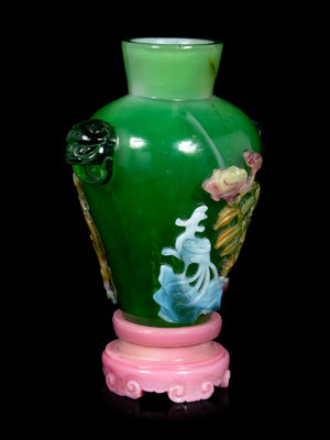 A Chinese Multi-Colored Overlay Transparent Green Glass Vase