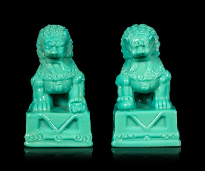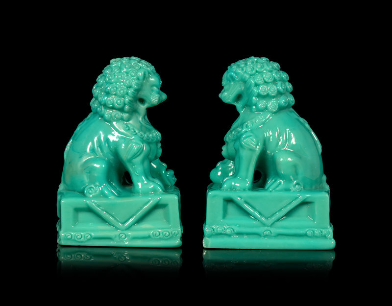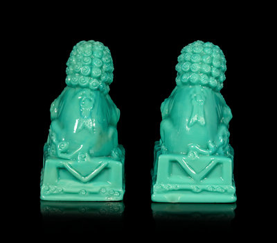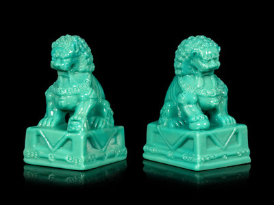 清晚期 松石綠料太獅少獅一對