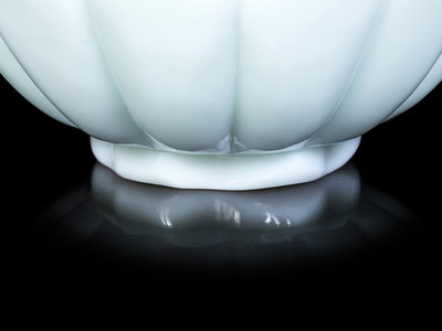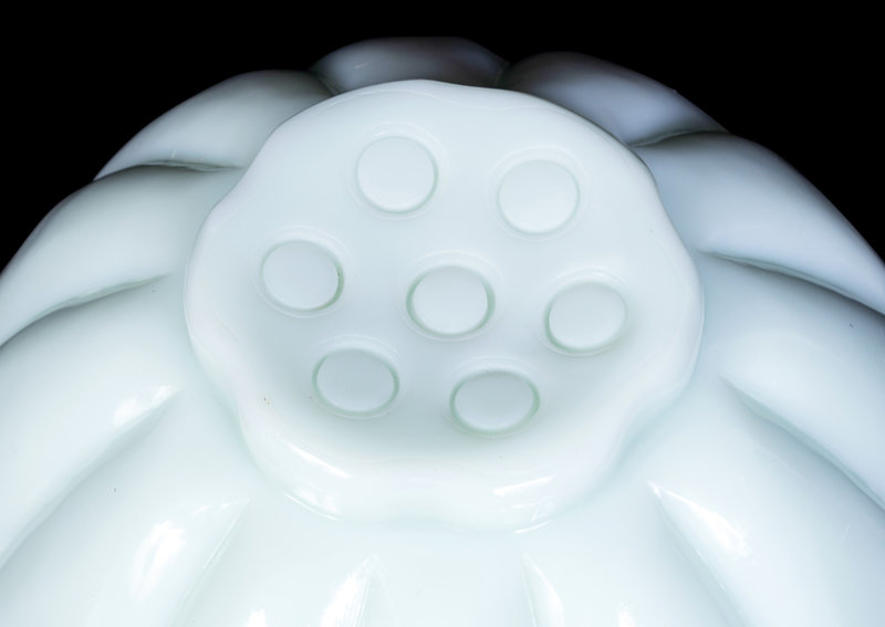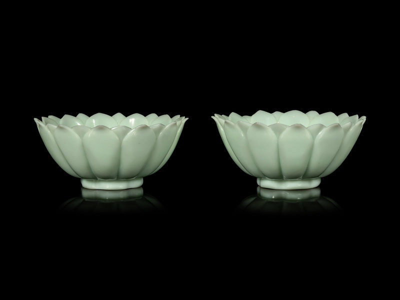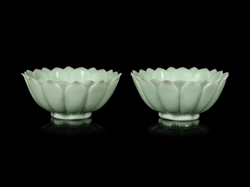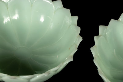 A Pair of Chinese Celadon Glass 'Lotus' Bowls