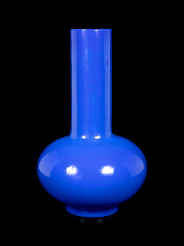 A Chinese Opaque Blue Glass Bottle Vase