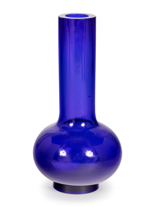 A Chinese Transparent Sapphire Blue Glass Bottle Vase