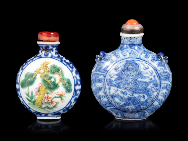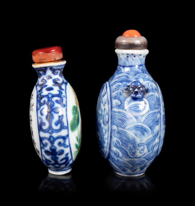 清中期 青花鼻烟壺兩件