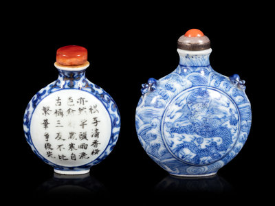 Two Chinese Blue and White Porcelain Snuff Bottles