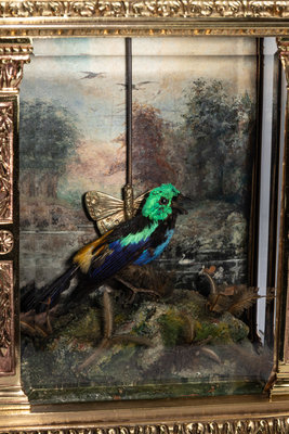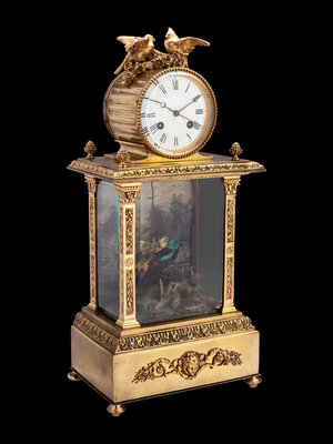 十九世紀下半葉 法國銅鍍金蝴蝶擺鳥音鐘