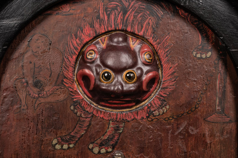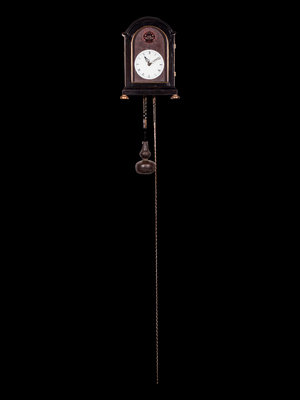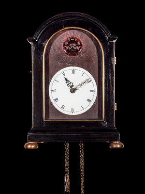 日本開埠后民族工業迅速發展,西風東漸,鐘錶行業也受到影響,這件挂鐘就體現了這種碰撞。經典的車棚式木樓下,輪擺設計成吉祥的葫蘆形,白琺琅錶盤上嵌入一顆靈活的獅子頭,上弦后,一雙烏目滴溜溜亂轉,非常趣致。