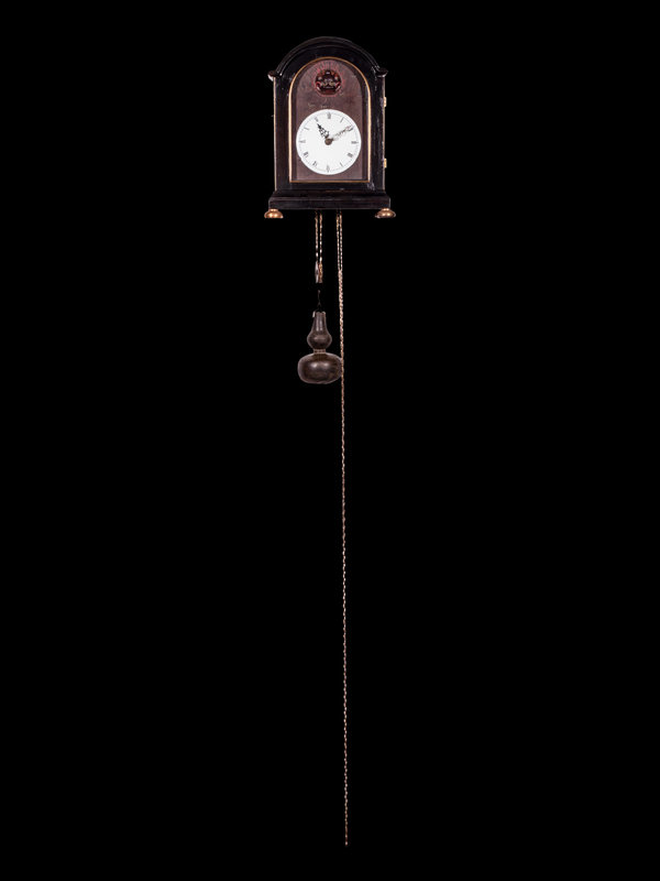 A Japanese Ebonized Cased Lantern Clock with Gourd-Form Weight