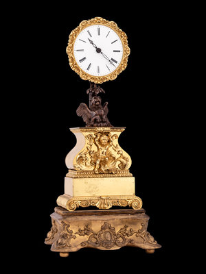 A French Gilt and Patinated Bronze Mystery Clock, with Wood Base, Attributed to Jean Eugene Robert Houdin
