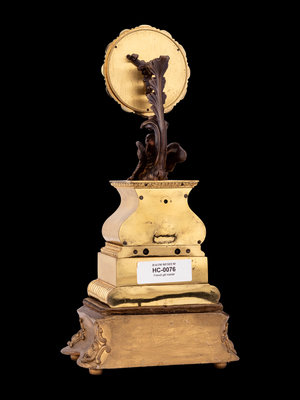 這件鐘錶的原型是法國魔術巨匠Jean Eugene Robert Houdin (胡丁,1805-1871)研製的著名的魅幻时钟。不同與傳統歐美鐘錶,胡丁大師將複雜的機芯完全隱藏到鈡座内,簡潔的白琺琅錶盤上伸如向日葵,帶翼雄獅象徵法蘭西,無一外露齒輪而運行如常,是謂神秘鈡。