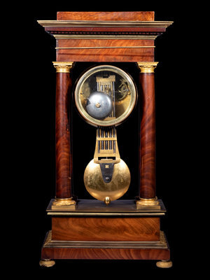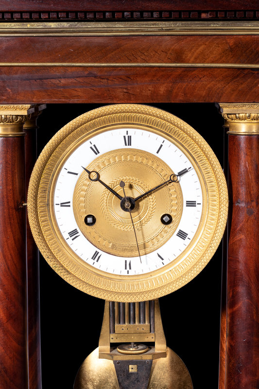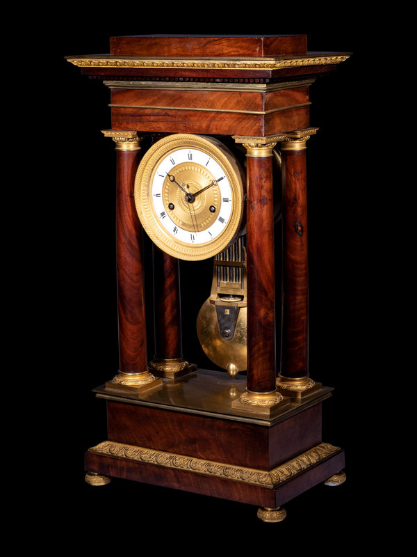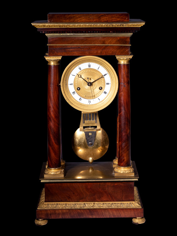 A French Gilt Bronze Mounted Mahogany Portico Clock, Ferrenbach, Chalons