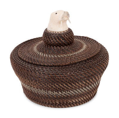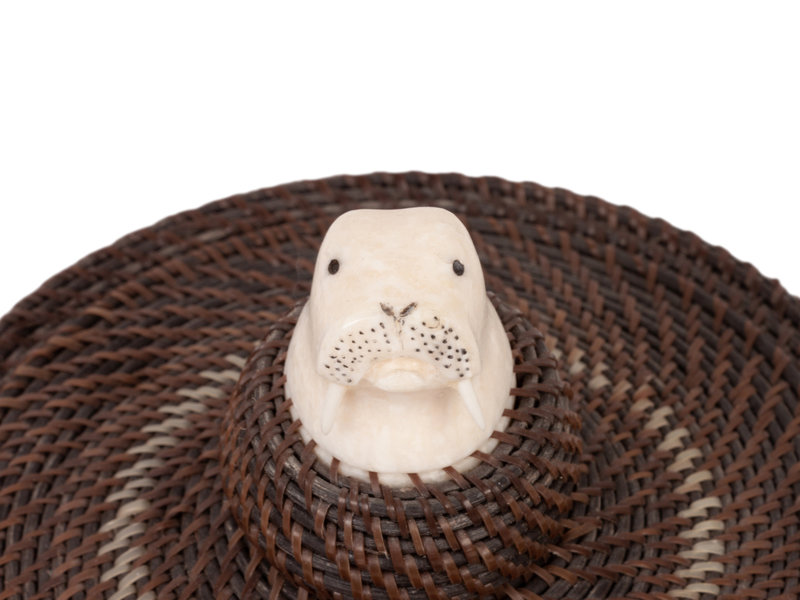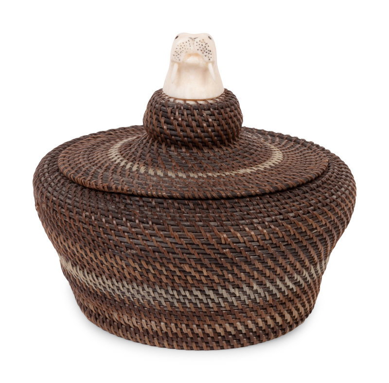 Lidded Baleen Basket, with Carved Walrus Head Finial