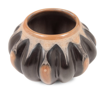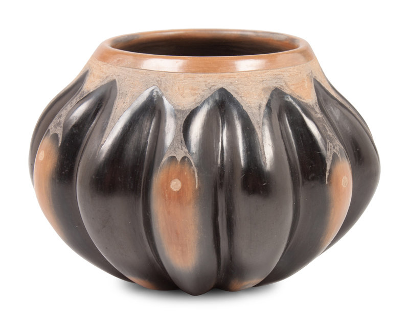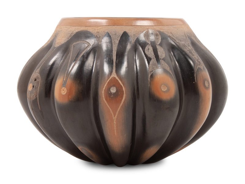 Two-toned Melon Pottery Jar, with Etched Decoration