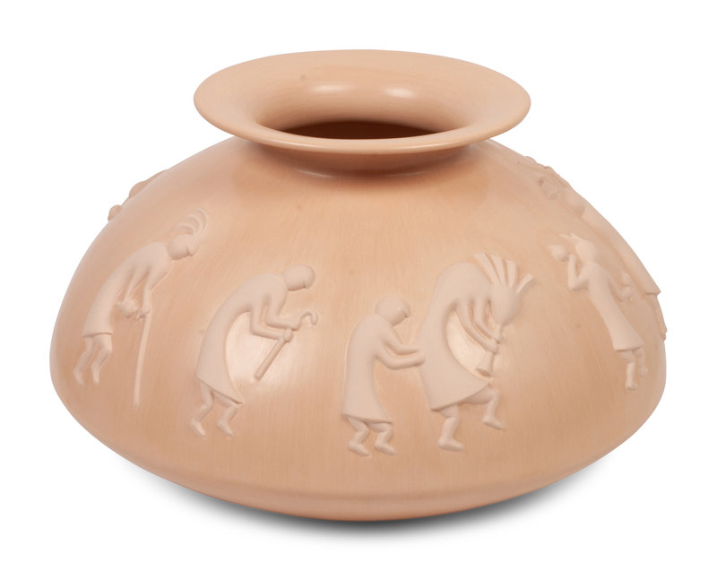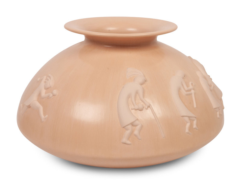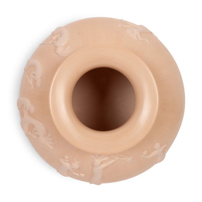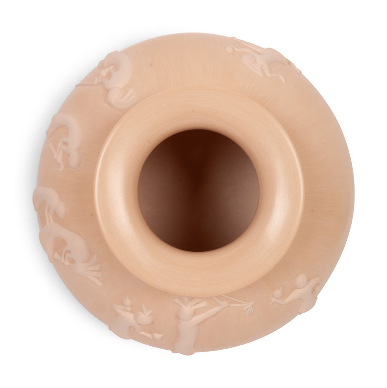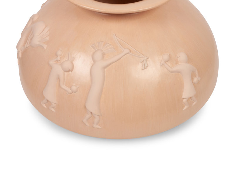 Large Buffware Pottery Jar, With Relief Carved Dancing Figures, 2013