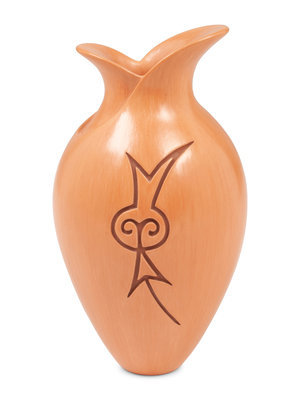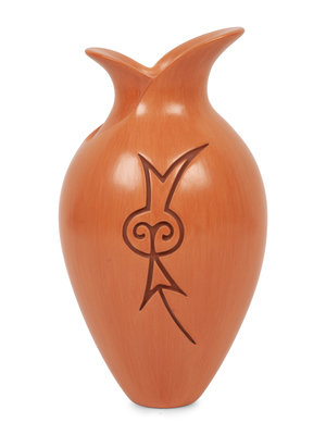, 2004with deeply carved flower on one side; opposite having wing with textured impressions; signed and dated on base