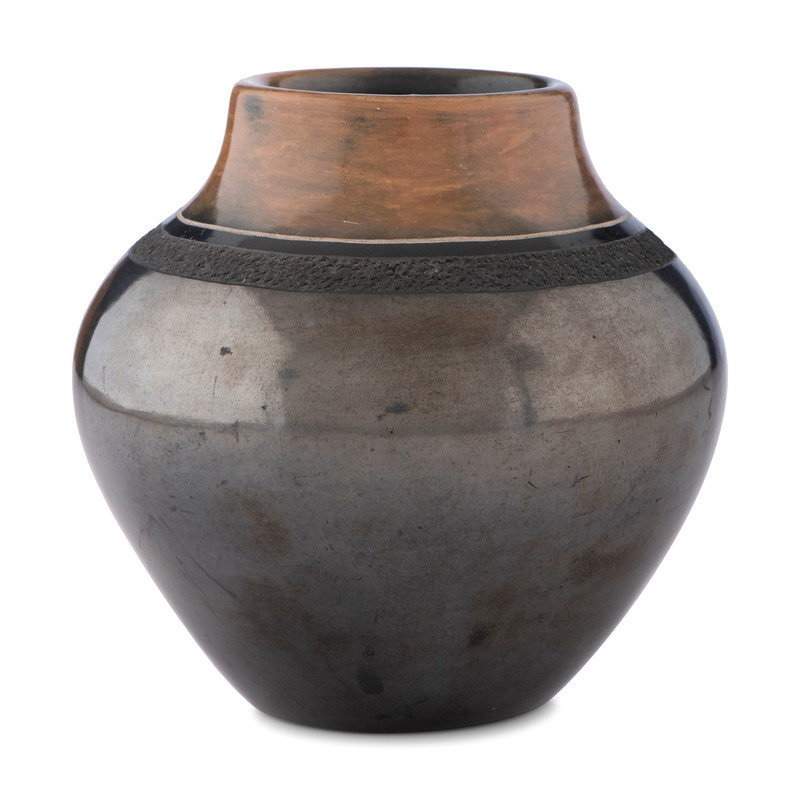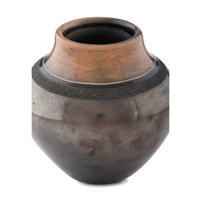 Black and Sienna Pottery Jar, with Gunmetal Finish