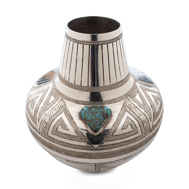 Sterling Silver Jar, with Nevada Blue Turquoise Cabochon