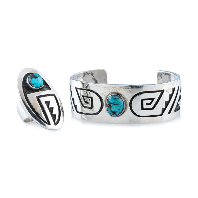 Silver Overlay Cuff Bracelet and Ring