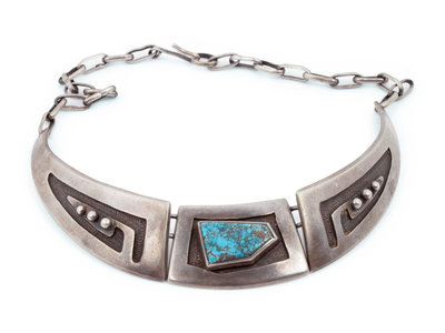 Silver Overlay Necklace, with Turquoise Cabochon