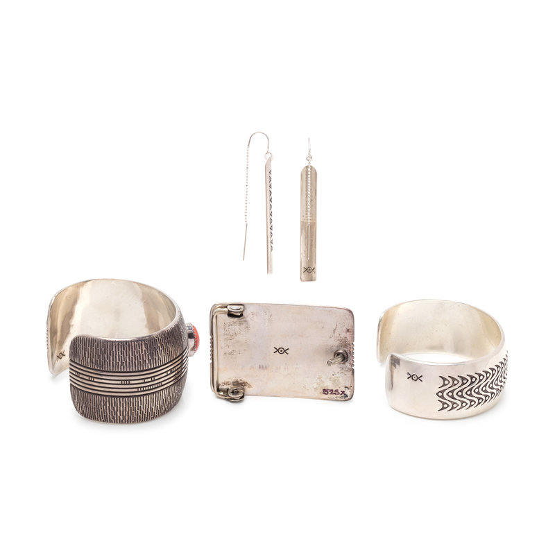 a silver cuff, with overlay wave design; marked with artist's hallmark O