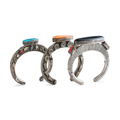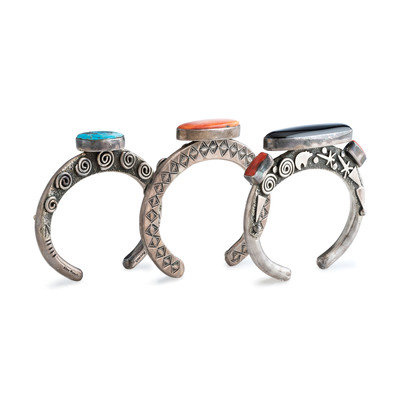 Group of Sterling Silver Cuff Bracelets, with Inlay