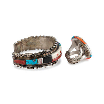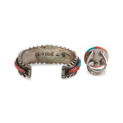 cuff signed DAVID TUNE marked STERLING along with artist's hallmark; ring marked with artist's hallmark