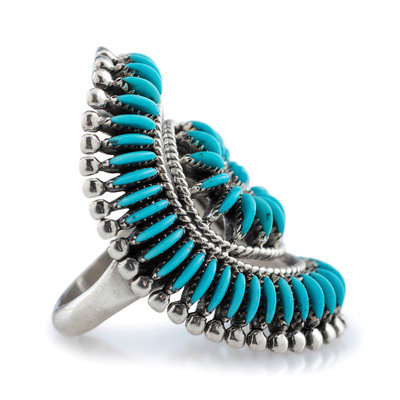 Silver Ring, with Needle Point Turquoise