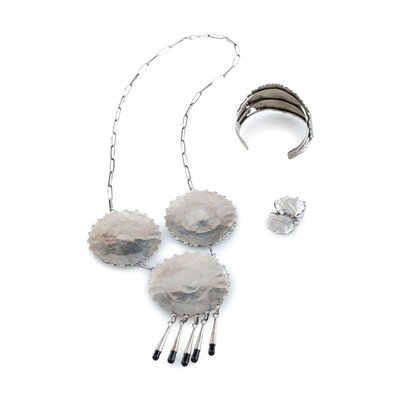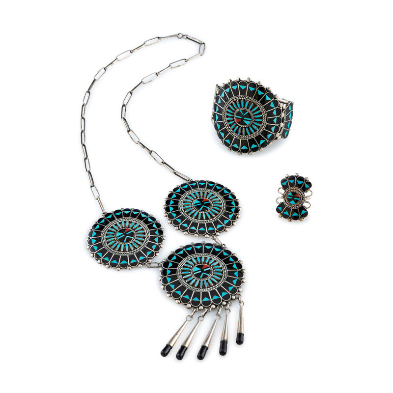 Mosaic Inlay Sunface Necklace, Cuff Bracelet, and Ring Set