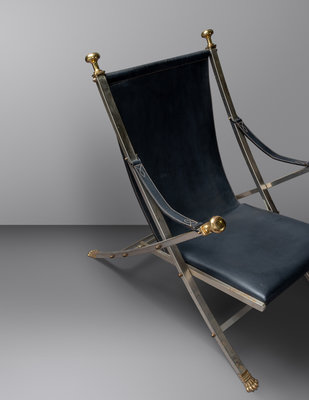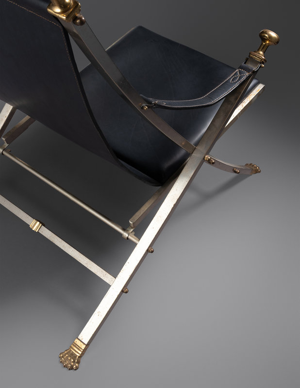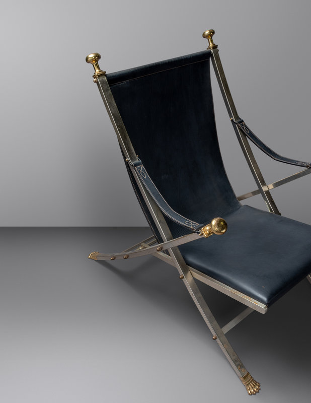 chrome-plated steel, leather, vinyl, brass