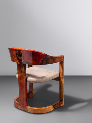 lacquered goat skin over wood, leather