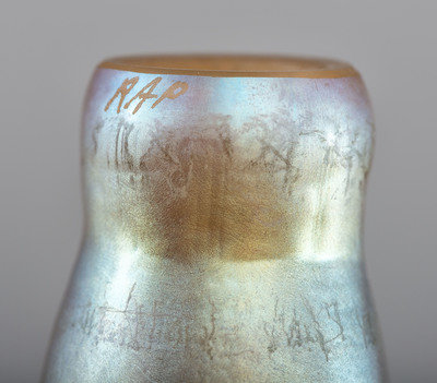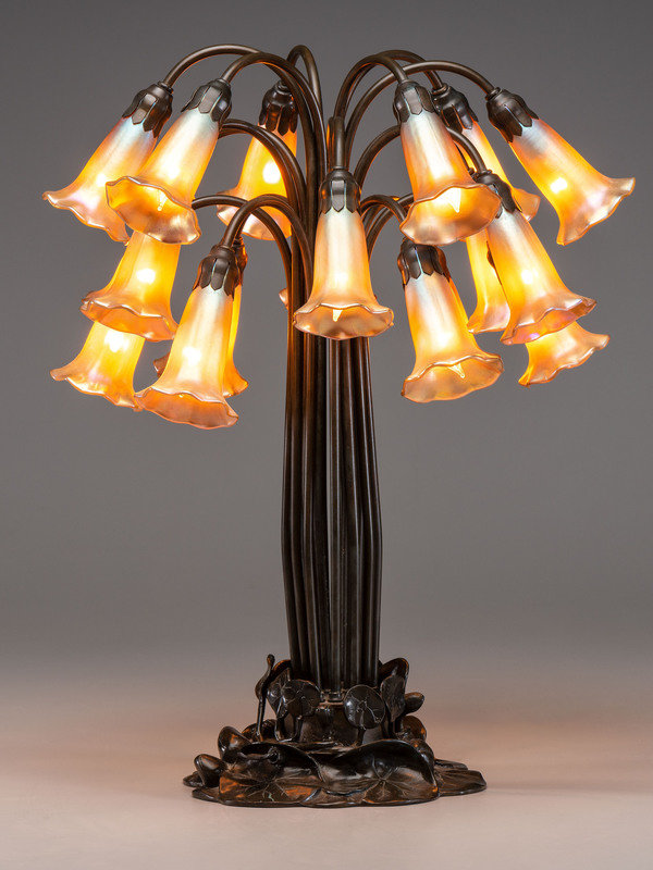 in the style of Tiffany Studios, the shades and base etched 'RAP.'