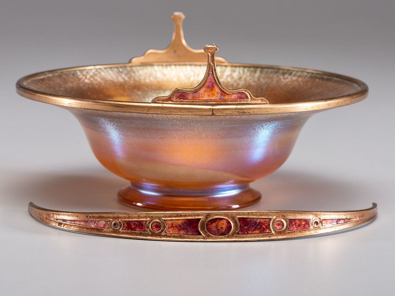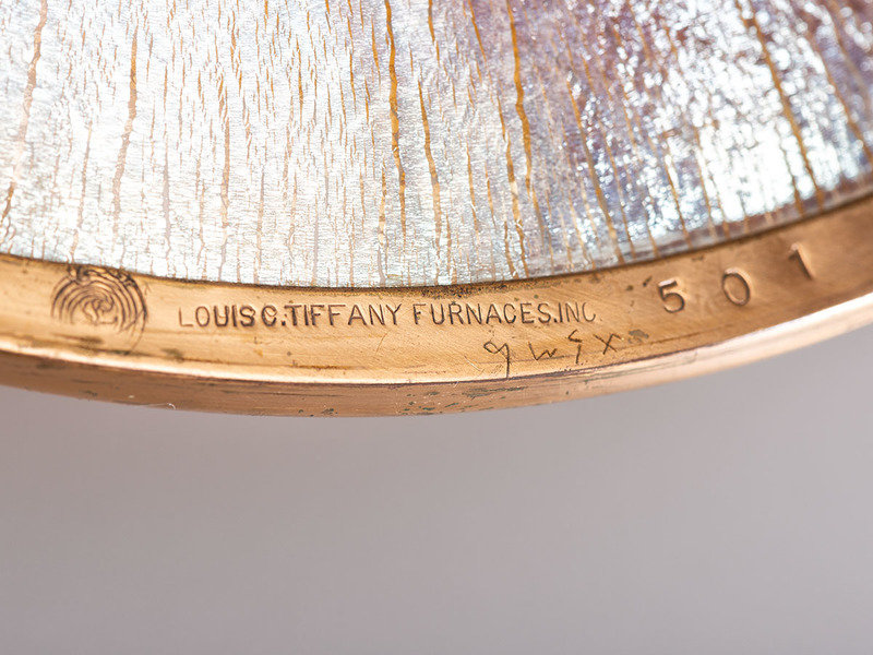 marked 'Louis C. Tiffany Furnaces. Inc. / 501' to bronze mount.