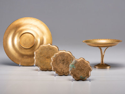 Compote and Bowl, together with a set of three nesting trays