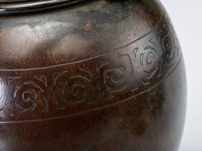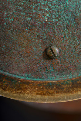 patinated bronze, leaded glass