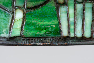 'Tiffany Studios' signature tag on shade, marked 'Tiffany Studios/New York/ 21260/11 on base of cannister
