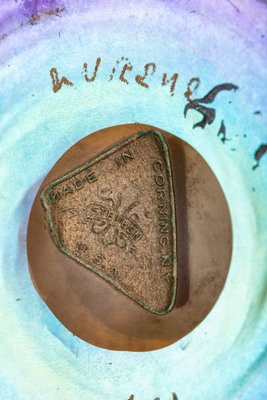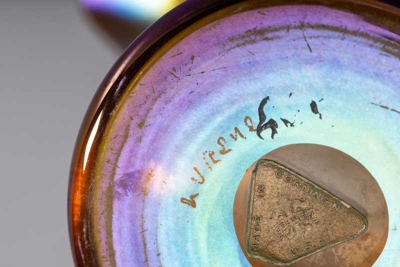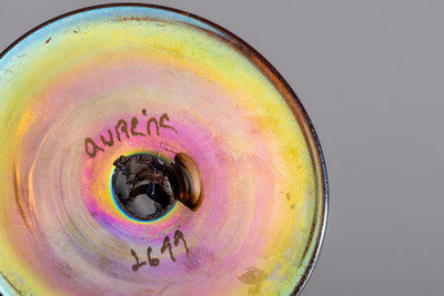 each marked 'Aurene' to underside, fluted vase with paper Steuben label