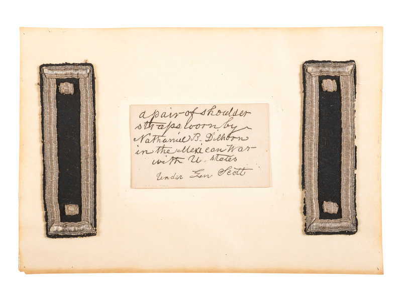 Also with a cdv of Nathaniel Dilhorn, with backmark of Roberts, Philadelphia. And a pair of shoulder straps worn by Dilhorn during the Mexican War.