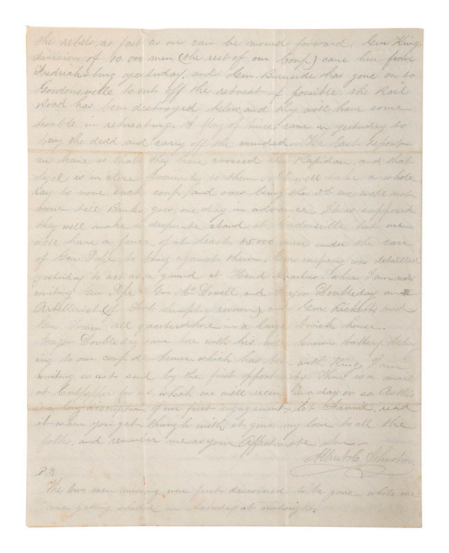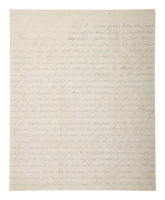 Camp on battlefield Cedar Run mountain 6 miles below Culpepper, Aug. 13, 1862 (4pp, 8 x 10 in.)