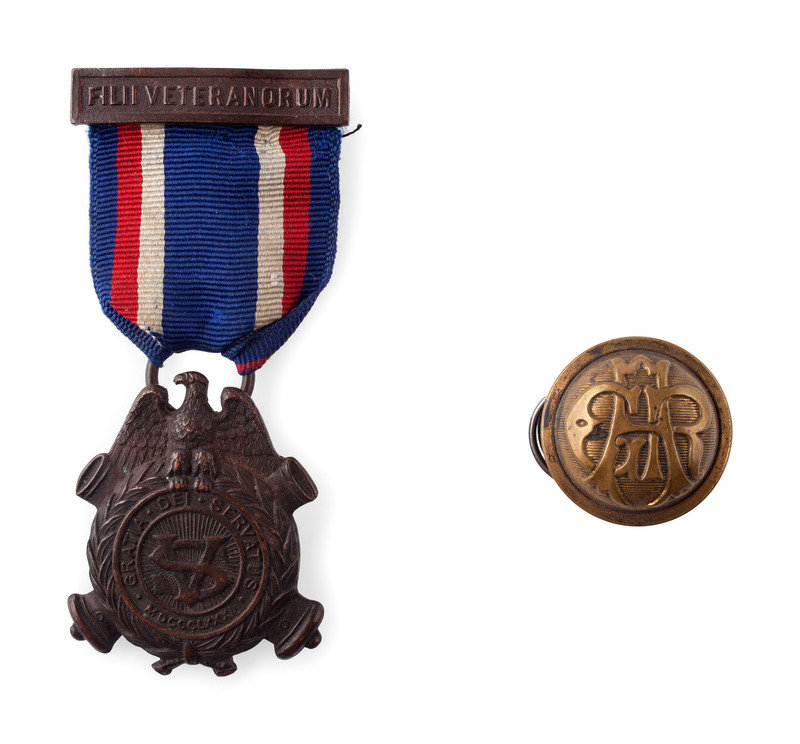 [With:] Approx. 3/4 in. dia. GAR button that likely came from Dewese's Grand Army of the Republic jacket (shows some wear but has a nice patina).