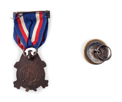 [Also with:] 1 1/4 x 3 in. Son of a Civil War Veteran medal, with Filii Veteranorum written across the top, issued in 1881, (some darkening, however, the ribbon portion remains bright and intact). This likely belonged to one of Dewese's sons.