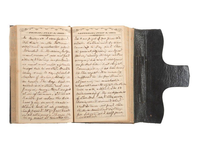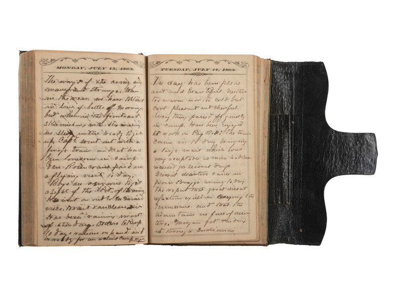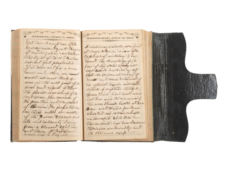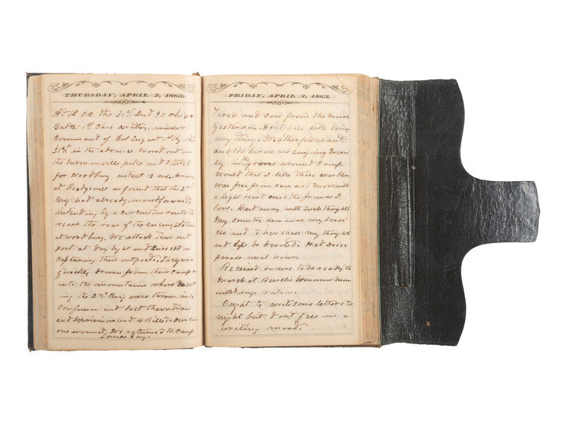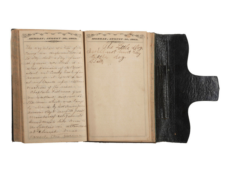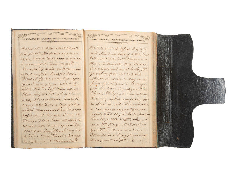 Pocket Diary 1863. Cambridgeport, Mass.: Denton & Wood, 1863. With day and date at top of each page, sections for accounts and other notes at the end, short almanac at the beginning.